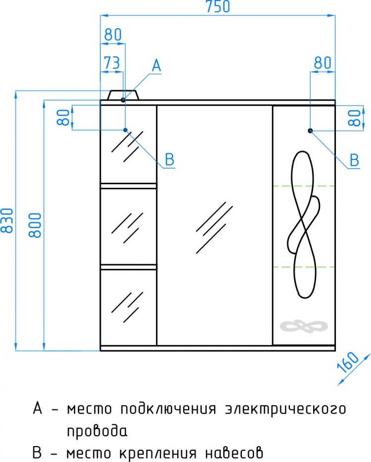 Зеркальный шкаф "Венеция" с подсветкой, элегантной фрезеровкой фасада и декоративными ручками, которые придают всей коллекции особый шарм . Фурнитура - хром, петли на дверцах с механизмом плавного закрывания. Стеклянные полки с еврокромкой и прозрачными полкодержателями Hefele; лазерная гравировка фирменного логотипа; встроенные светильники в шкафах комплектуются выключателем, розеткой и трансформатором. Высокоточная обработка кромки фацетом 10 мм придает изделию законченный вид и защищает от порезов
