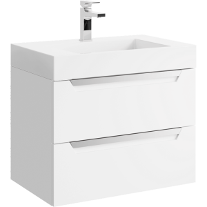 Подвесная тумба в белом матовом цвете с двумя ящиками под умывальник из литьевого мрамора.Коллекция мебели Cube – это строгие линии мебели для современных интерьеров, подчёркнутые искусным исполнением. Подвесные гарнитуры Cube поставляются в размерах 70 и 90 см. Доступные цвета мебели – белый и серый. Финальный слой лака – матовый.