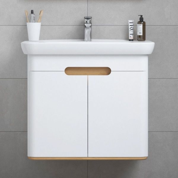 Шкаф Sento с раковиной, с 2 ящиками, 65 см, с LED подсветкой, цвет матовый белый ( ножки 61069 заказываются отдельно )