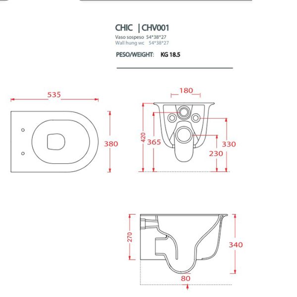Унитаз Artceram Chic CHV001 94 00 calacattaArtceram CHIC Унитаз подвесной безободковый 38х53 см, с крепеж., отделка calacatta