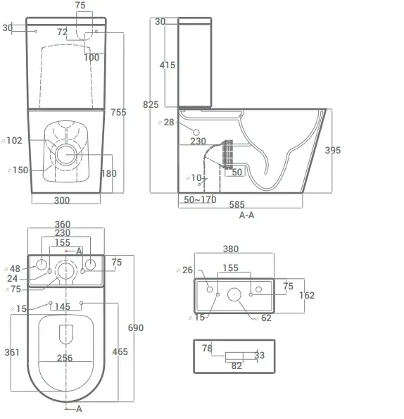 • Укороченный унитаз: