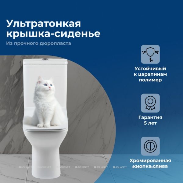 Унитаз с бачком, арматурой бачка с кнопкой и сиденьем Особенности: