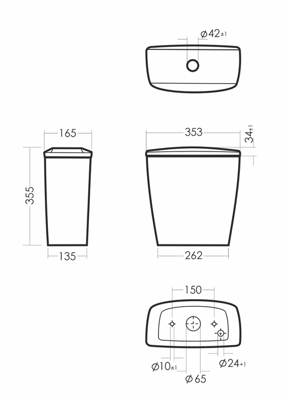Размеры унитаза-компакта: 615 x 360 x 760