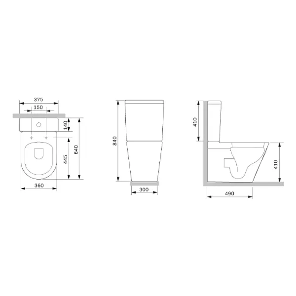 • Прилегание унитаза к стене: