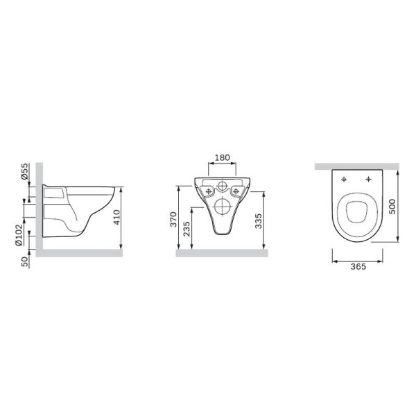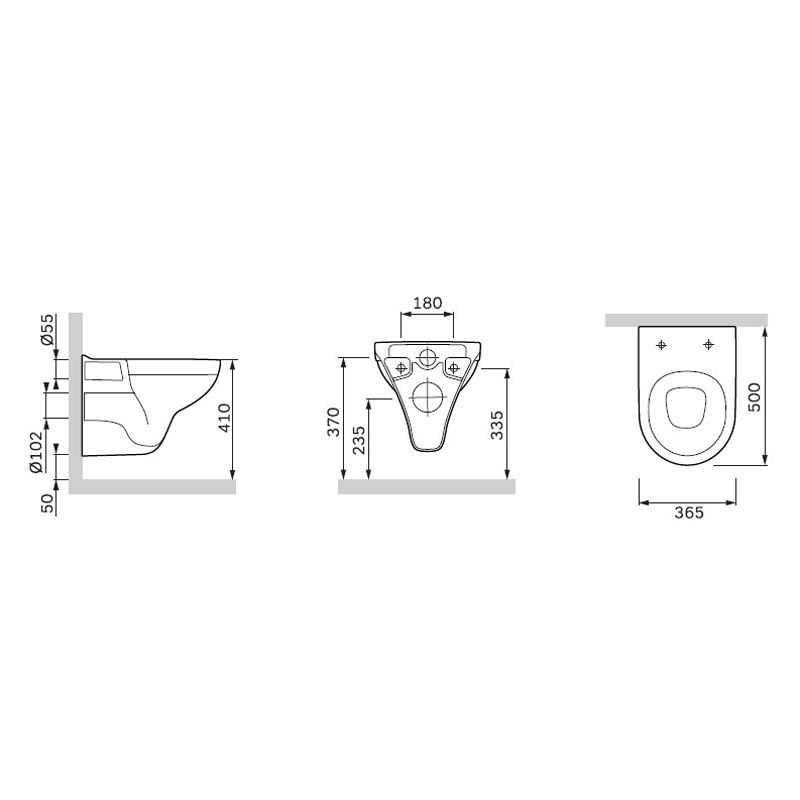 • Прилегание унитаза к стене: