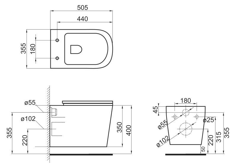 - Укороченный унитаз:нет