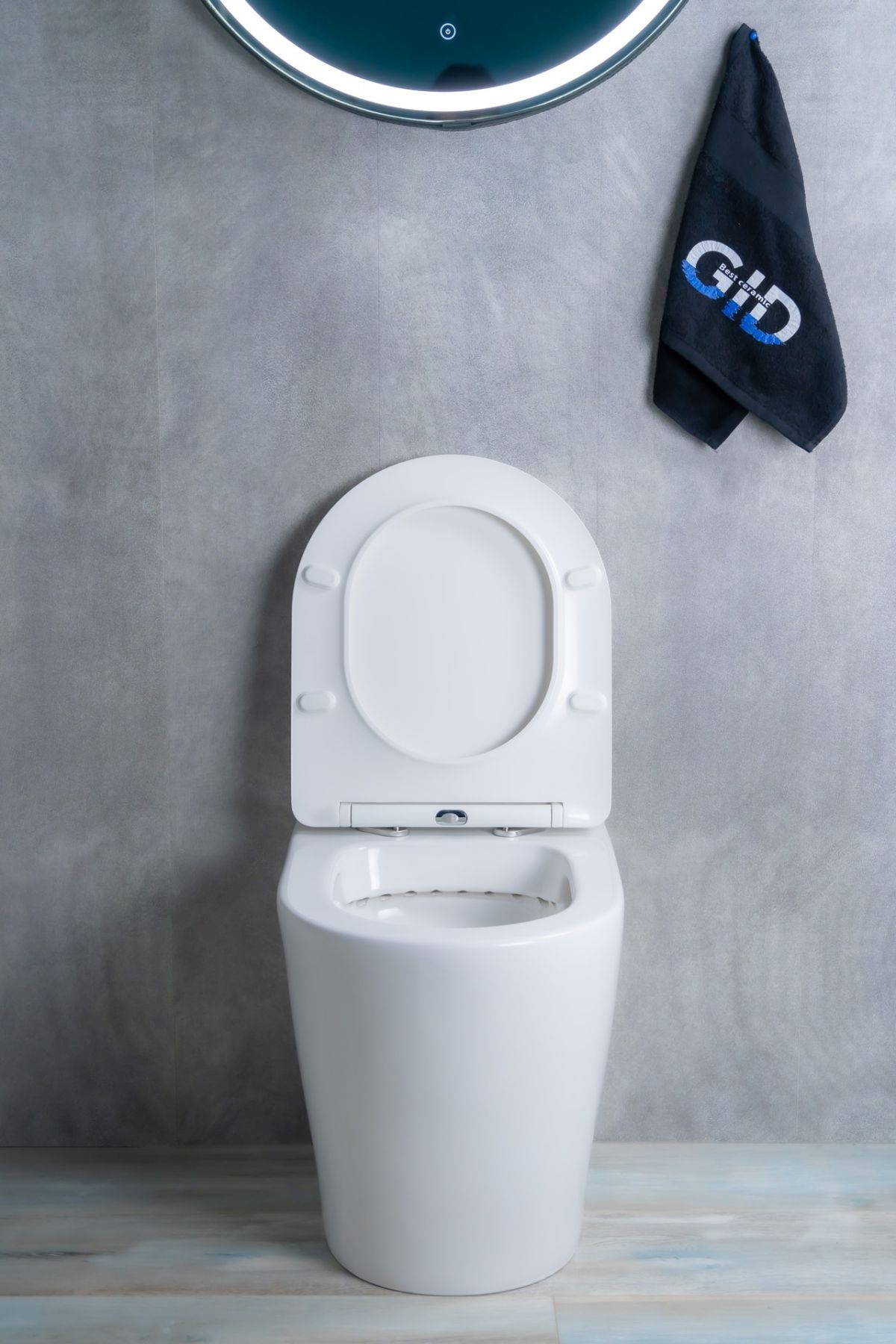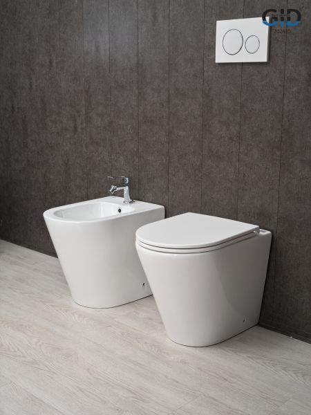Cortado — стильная коллекция округлых унитазов и биде со скосом к низу. Испанское качество гарантирует надежность, а европейская сертификация подтверждает их качество. Приставной безободковый унитаз GiD TRS-263 — стильная напольная модель с горизонтальным выпуском предназначена для установки со скрытым бачком. Выполнен из высококачественной керамики белого цвета с глянцевым покрытием, что обеспечивает долговечность и уникальный внешний вид. Крышка унитаза изготовлена из прочного дюропласта и оснащена функцией микролифта, которая обеспечивает плавное и бесшумное опускание.