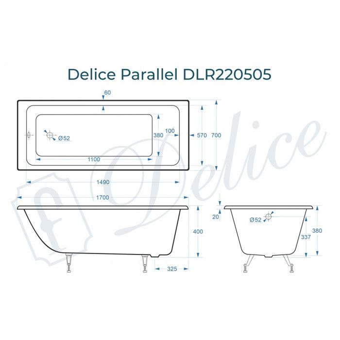 Ванна чугунная Delice Parallel DLR220505 170x70см белый купить