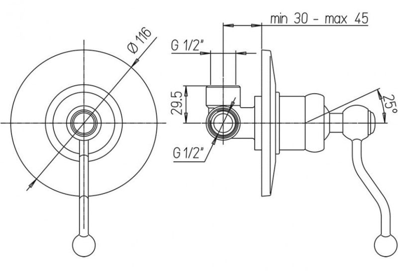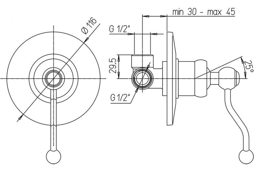 • Встраиваемый монтаж скрывает все соединения и оставляет на виду только рычаг управления, экономя пространство.