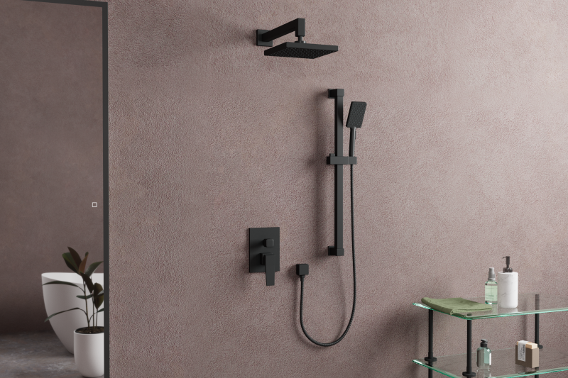 Встраиваемая душевая система RUSH арт.TR3635-41 Black из коллекции Thira изготовлена из высококачественной латуни и имеет рычажное управление.В душевую систему установлен картридж D-35 с керамическими пластинами.В комплекте 2x- режимная душевая лейка, 1-режимный тропический душ, изготовленный из современной прочной пластмассы, стойка с регулируемым держателем лейки, душевой шланг двойной оплетки 150см, смеситель, индивидуальный пакет, паспорт, гарантийный талон.