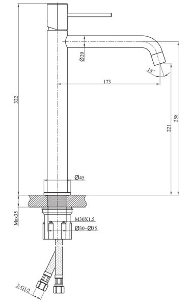 - Высота смесителя:32.2
