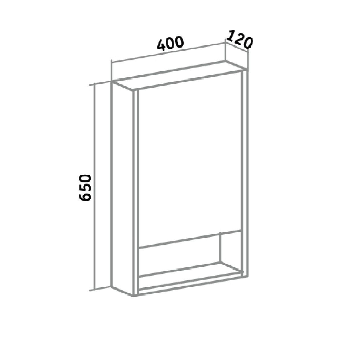 Зеркальный шкаф без подсветки с распашным фасадом и открытой нижней полкой (петли справа). Петли со встроеным доводчиком. Выпускается только в правом исполнении.
