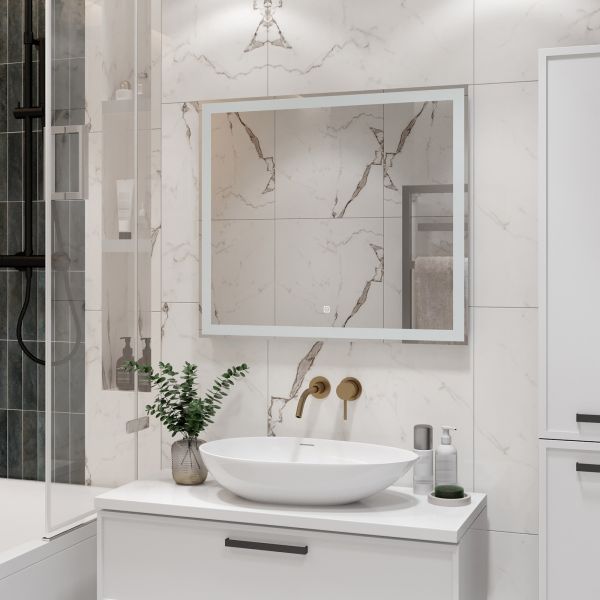 Зеркало с подсветкой для ванной комнаты — это элемент интерьера, который сочетает в себе функции, эстетику и современный дизайн. Его изящная форма и тонкие линии легко вливаются в любое пространство, создавая атмосферу утонченности и уюта.Интегрированная светодиодная подсветка обрамляет зеркало, даря мягкий, рассеянный свет, который не только позволяет удобно наносить макияж, но и наполняет ванную комнату теплом и позитивной энергией.Классический дизайн позволяет использовать его в различных стилях – от минимализма до современного эклектичного оформления. Оно прекрасно вписывается в любую цветовую гамму, будь то нейтральные тона или более яркие акценты.