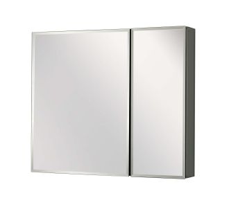 Благодаря компактным размерам и небольшой глубине такой шкаф-зеркало с дверками, которые скрывают банные предметы от глаз и пыли, будет хорошей альтернативой для тех, кто ищет небольшие полочки в ванную комнату.