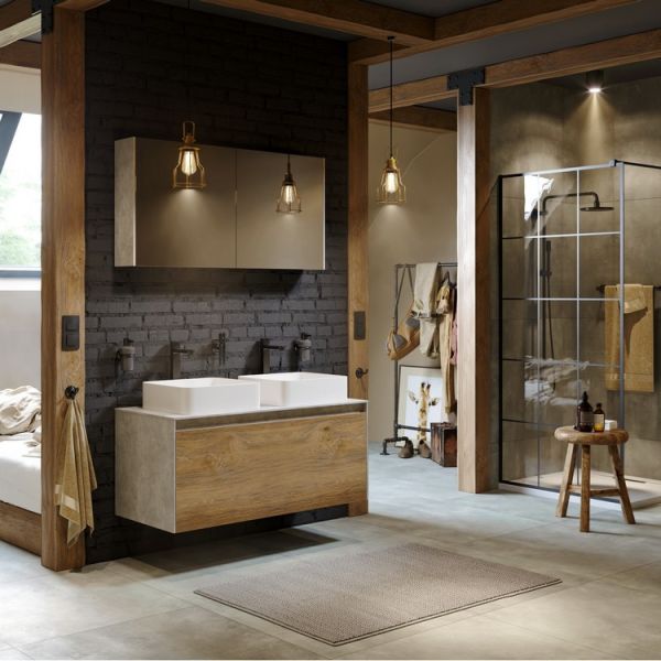 Зеркало-шкаф Aqwella Mobi MOB0412+MOB0717DB 120 смЗеркальный шкаф 120 см с двумя дверьми на петлях с доводчиком. Цвет дуб балтийский